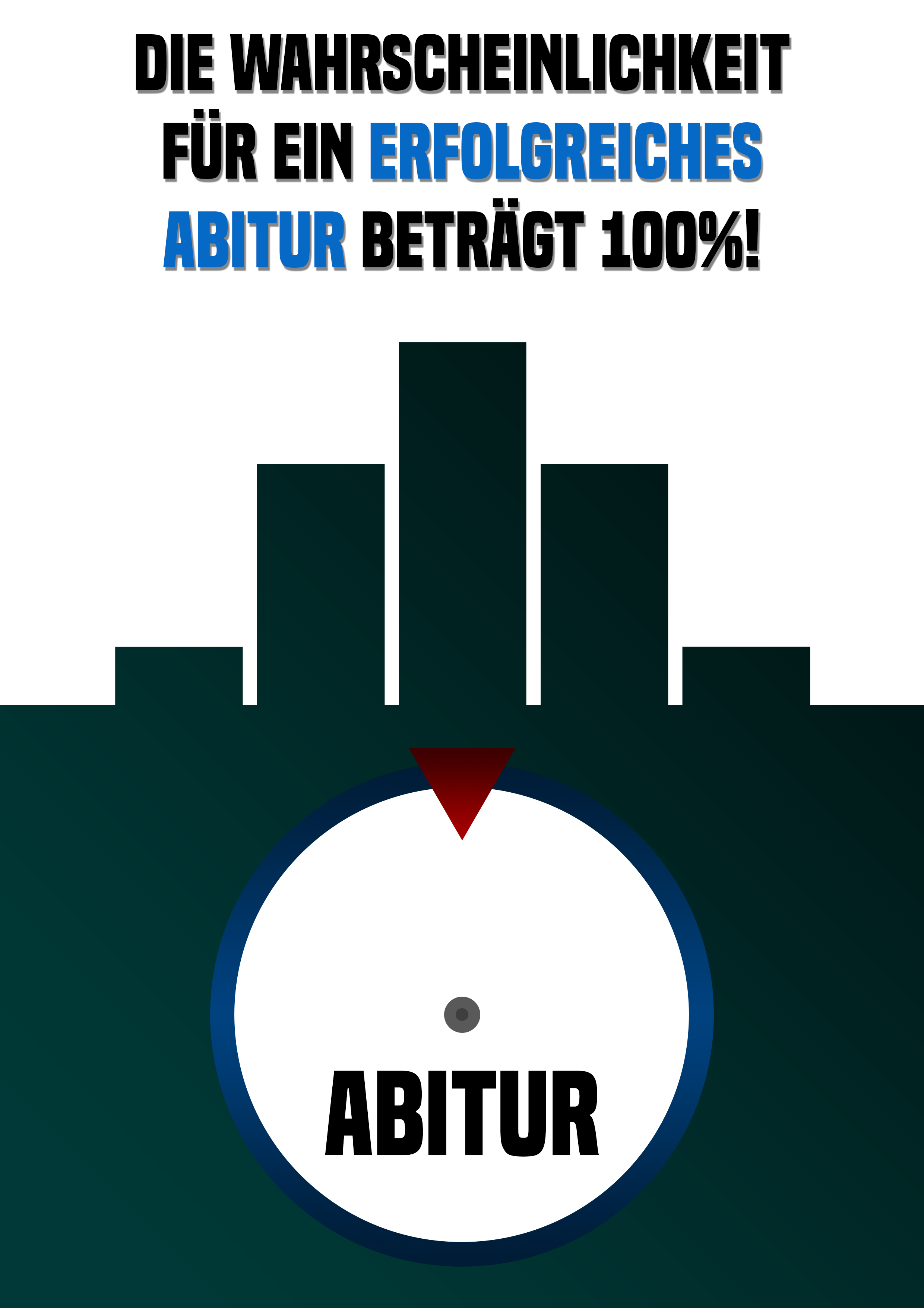 The third cover page featured the topic “Stochastics” with the slogan “The chance for a successful Abitur is 100\%”. The cover specifically featured a wheel of fortune to illustrate an example of stochastics. This was specifically designed to make the topic more relatable for the viewer and to encourage them since stochastics was the least liked topic in the course.